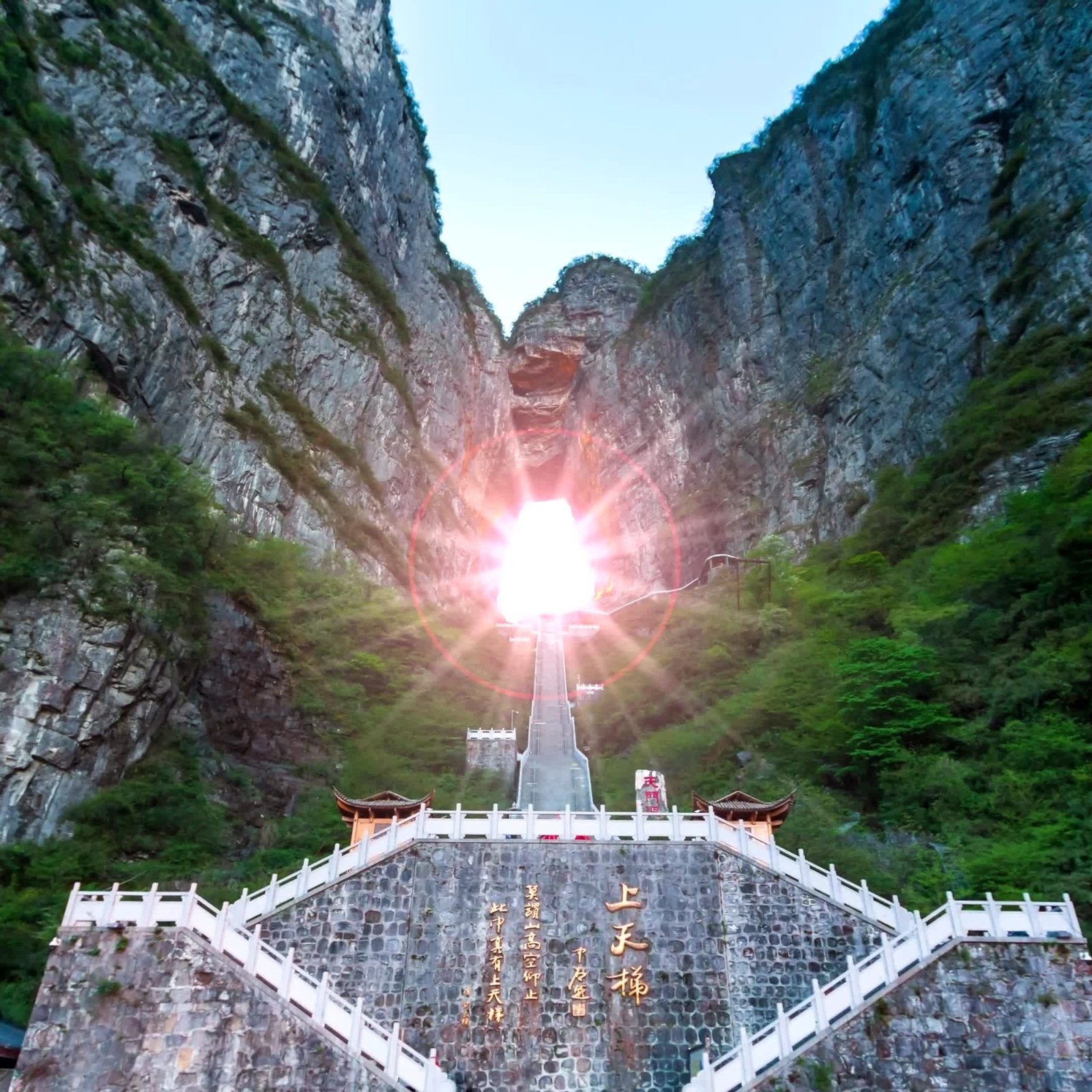 • Visit Tianmen Cave, the world’s highest natural karst arch-through mountain cave.